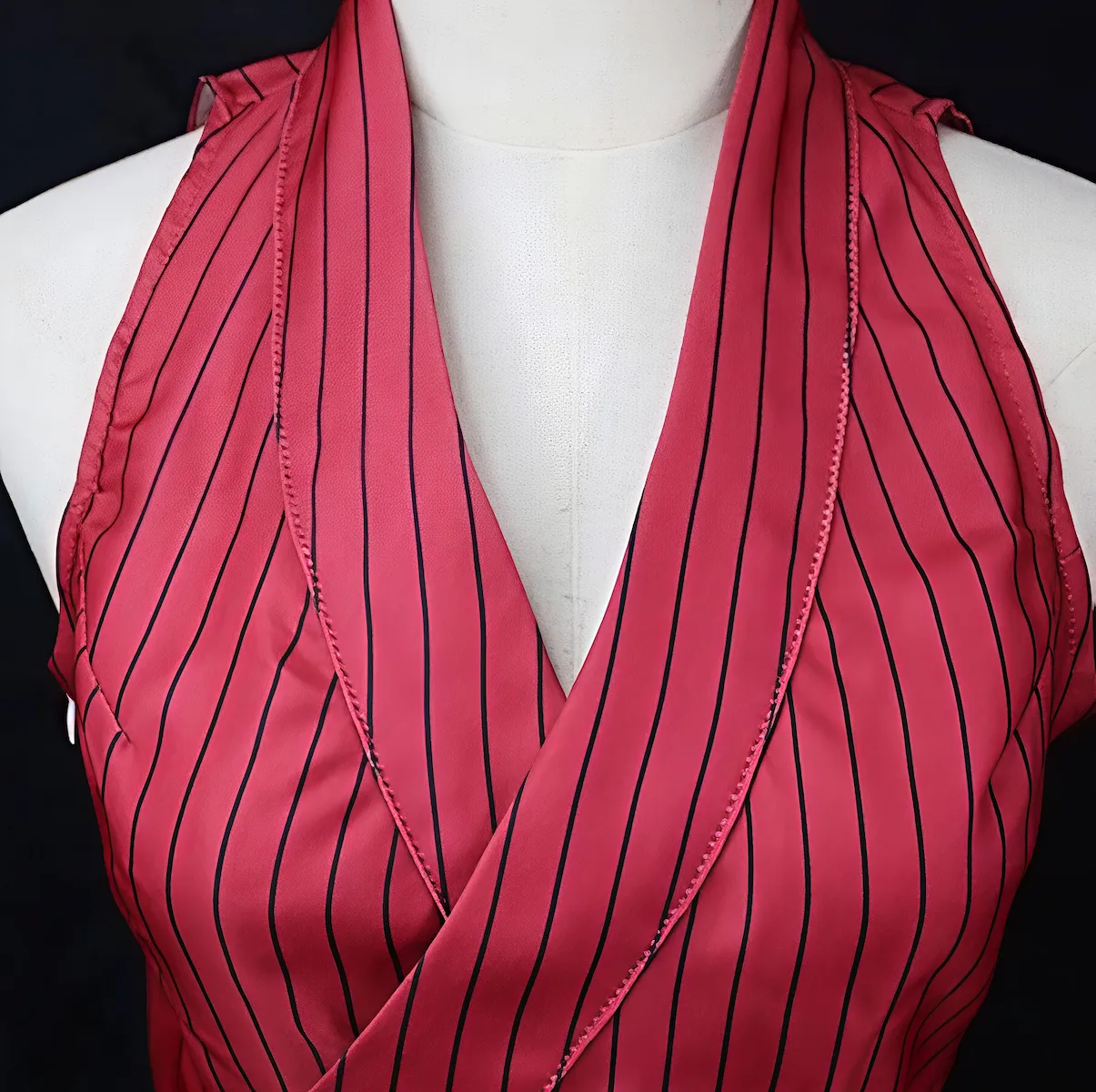 • Red sleeveless striped dress