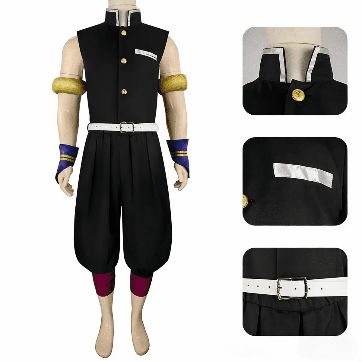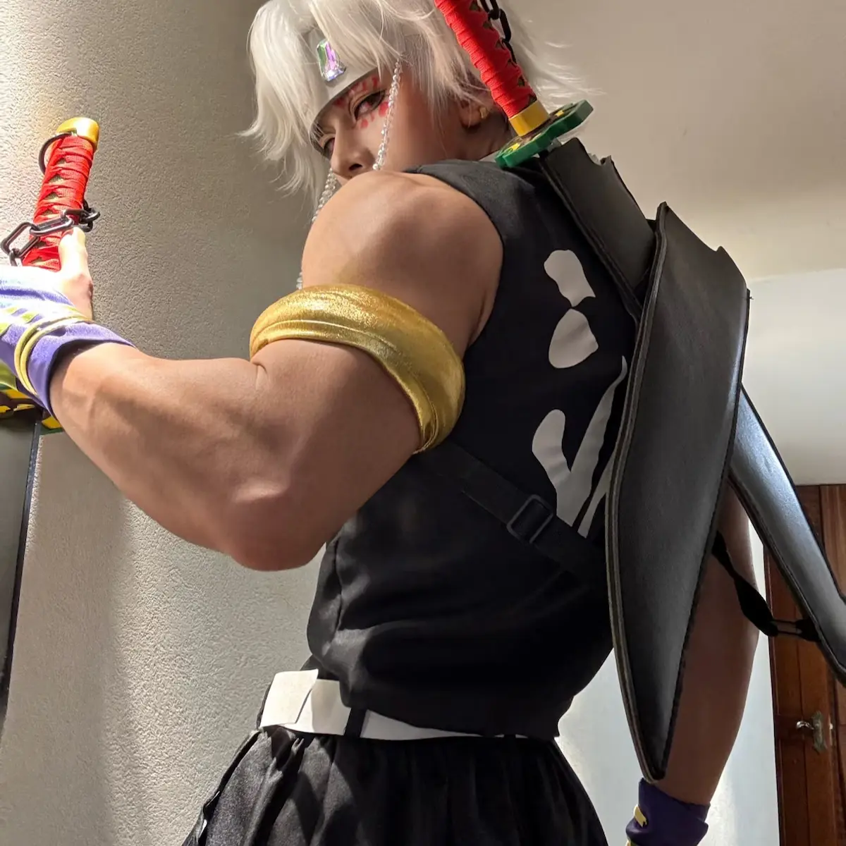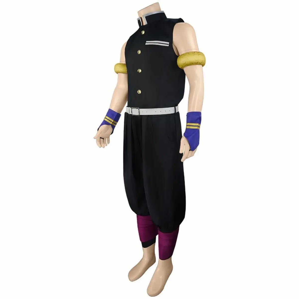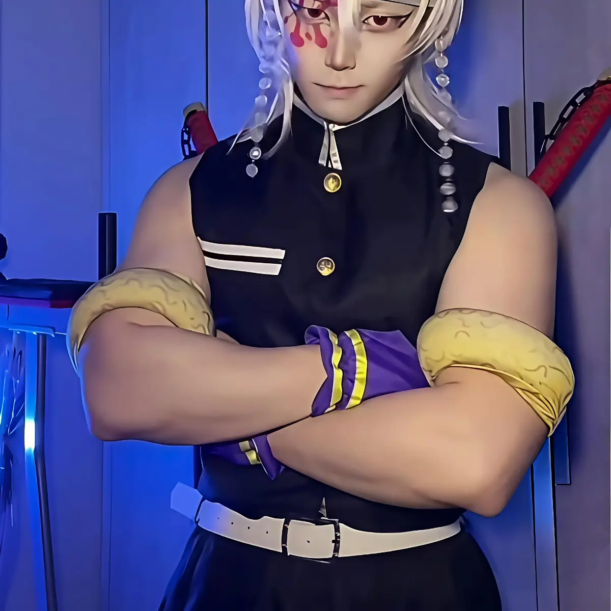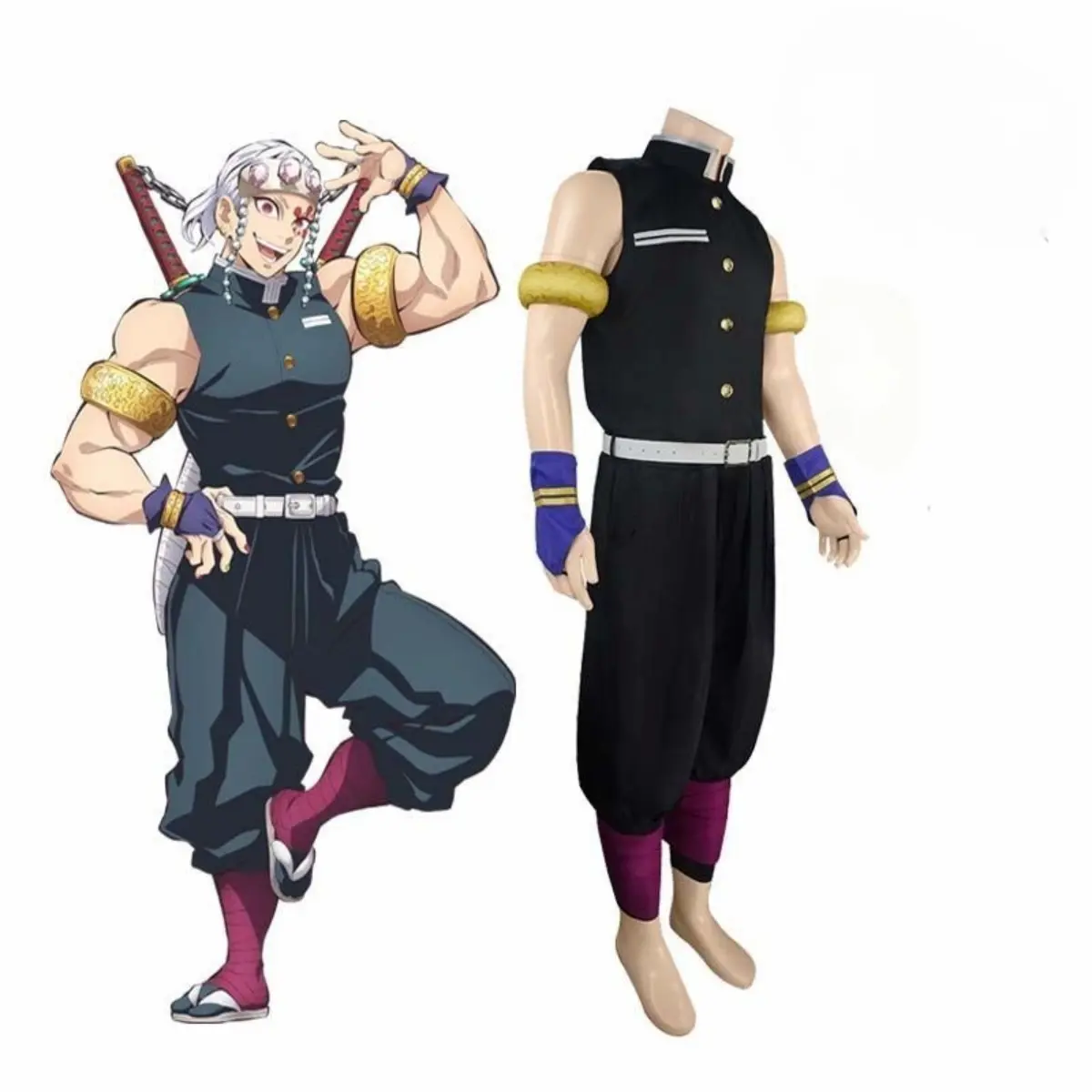 Inspired by Tengen Uzui from Demon Slayer: Kimetsu no Yaiba, this cosplay costume recreates the bold and flamboyant presence of the Sound Hashira. Known for his flashy personality, unique style, and powerful combat skills, Tengen is one of the most visually distinctive characters in the Demon Slayer Corps. His sleeveless uniform, arm wraps, and iconic shinobi-inspired accessories make his design instantly recognizable. This cosplay outfit captures the essence of Tengen’s look, making it perfect for fans who want to stand out at conventions and cosplay events.